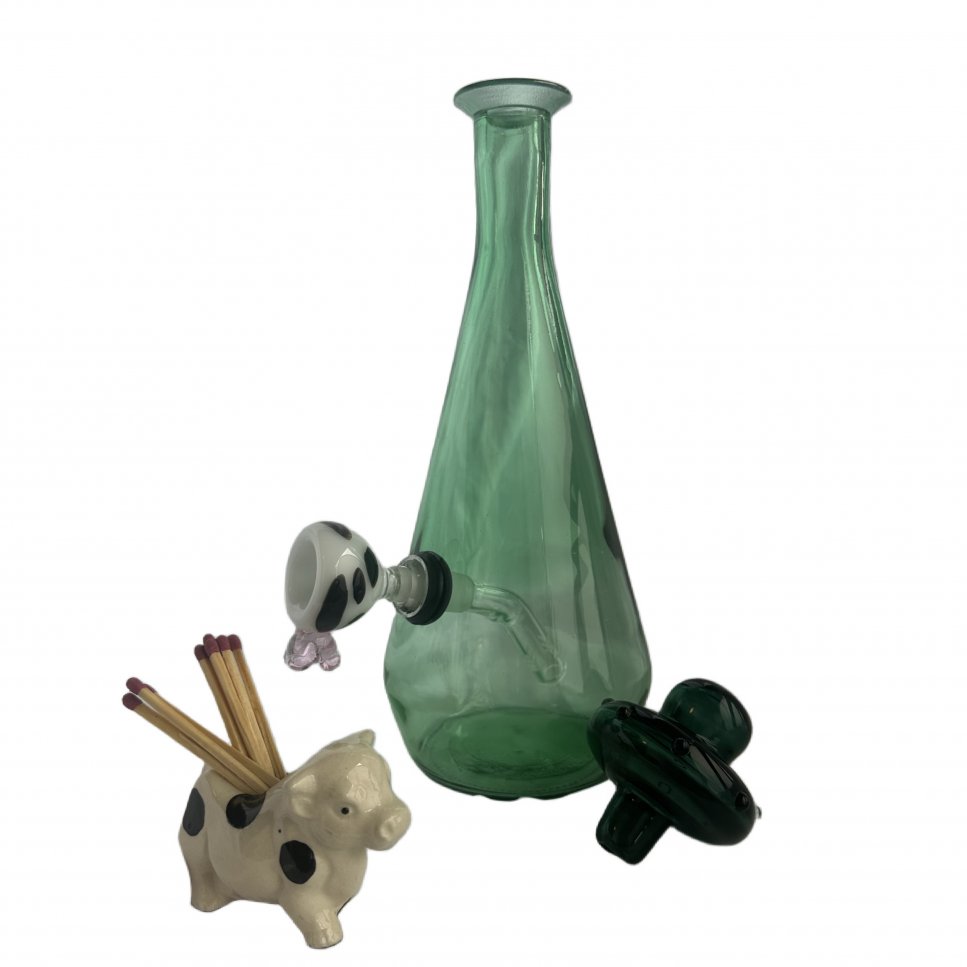 vintage 1968 emerald jim beam converted decanter with custom bent stem
